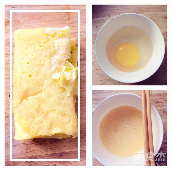 2、没有鸡蛋我用了一颗鹅蛋,打散加盐,电饼铛摊薄饼,