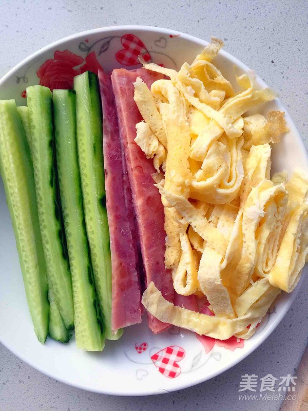 3、黄瓜 火腿 蛋饼切孝躲择细条