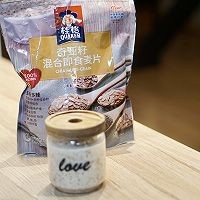3、罐中倒入温水泡发好的桂格奇亚籽混合即食麦片,再倒入刚加热好的椰奶豆浆混合物。 搅拌至无结块。