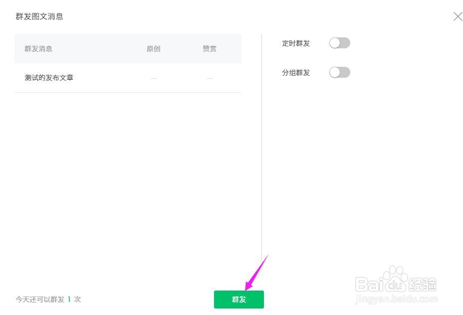 9、如果你想全部群发,就不用管右边的“定时群发和分组群发”的按钮,直接点击下方的“群发”