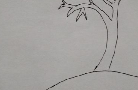 3、接下来在大树下画一条弧线,就是大树下面的土地。