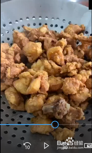2、油热放入鸡块炸至金黄捞出,油温升高复炸一遍捞出控油;