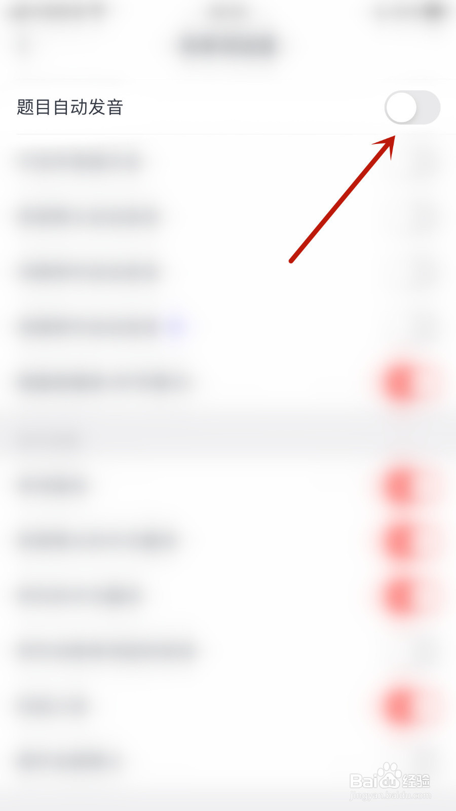 4、【题目自动发音】后面的圆点变为灰色即表示拓词停用题目自动发音成功