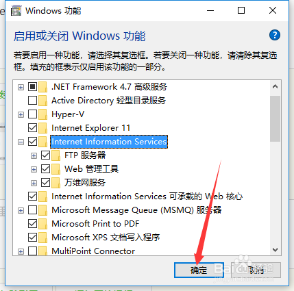 5、展开Internet Information Services节点,选中其下面的所以子项。