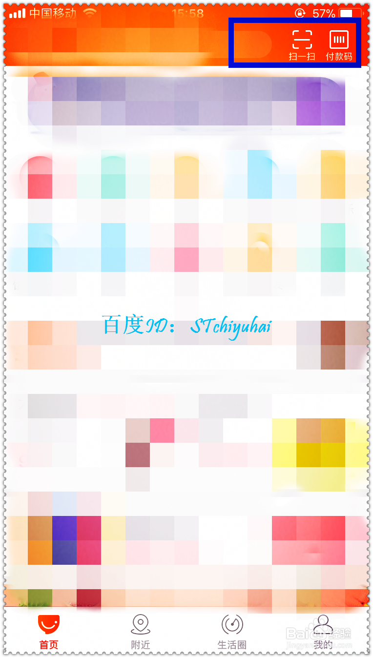5、我们去线下店铺选择商品,然后去前台支付,返回口碑APP主界面,在右上角有个支付码,和支付宝支付码一样的,点击给收银员扫描即可。