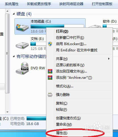 2、右击C盘。点击属性
