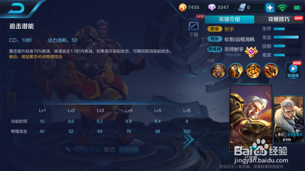 黄忠被动技能加暴击和攻击伤害。