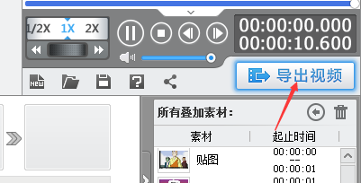 14、用同样 的步骤添加第三张第四张图片。直到添加完你需要添加的所有图片。添加完成后。视频就做好了。然后咱们点击“导出视频”把视频存储到电脑上就可以了。