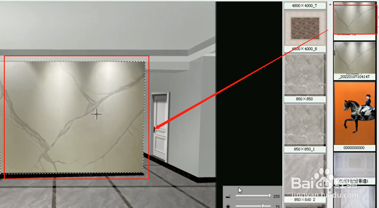 3、用鼠标框选墙面区域,然后点击岩板素材