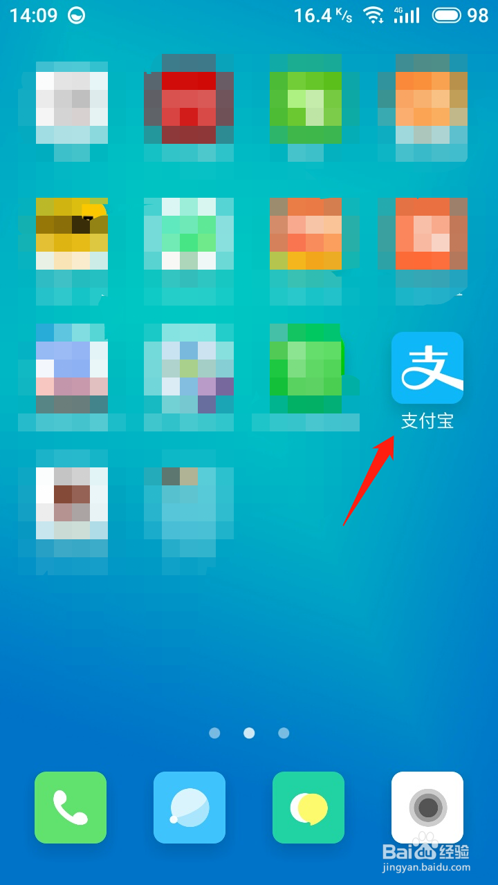 1、1. 手机打开支付宝。