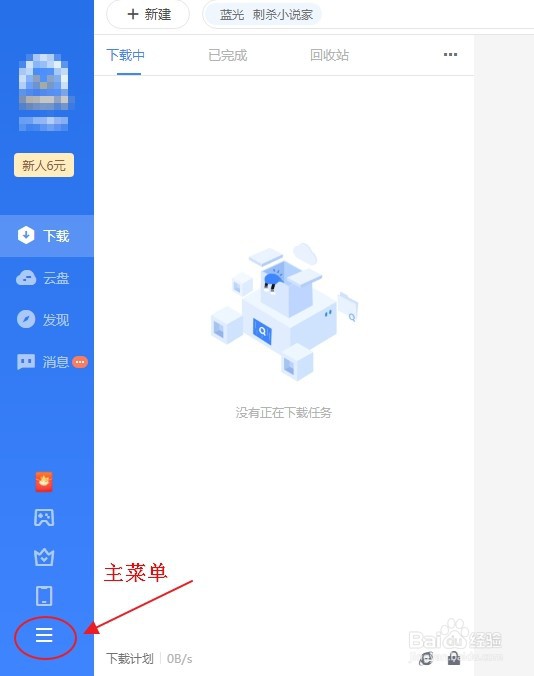 2、打开迅雷软件之后,我们在迅雷软件主界面的左下方点击主菜单按钮,该按钮的形状为三根短横线。
