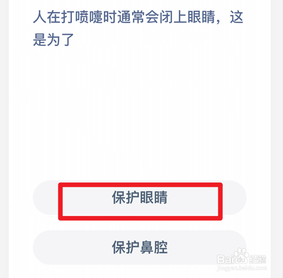 2、正确选项:保护眼睛;