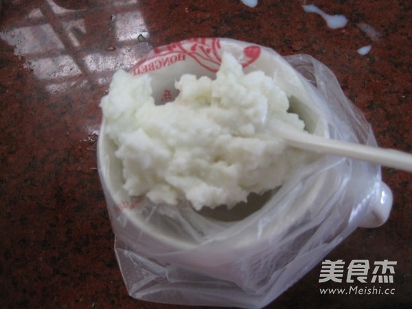 5、然后把山药泥舀到挤花嘴里面。