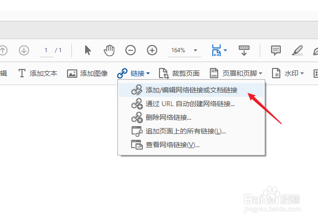 3、点击选择顶部工具栏中的“链接”-“添加或编辑网络链接或文档链接”。