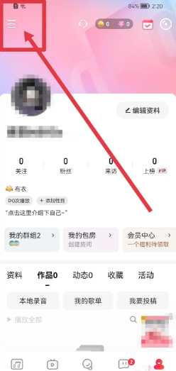 1、打开手机上的“唱吧”软件,在我的页面,点击左上角“更多”按钮