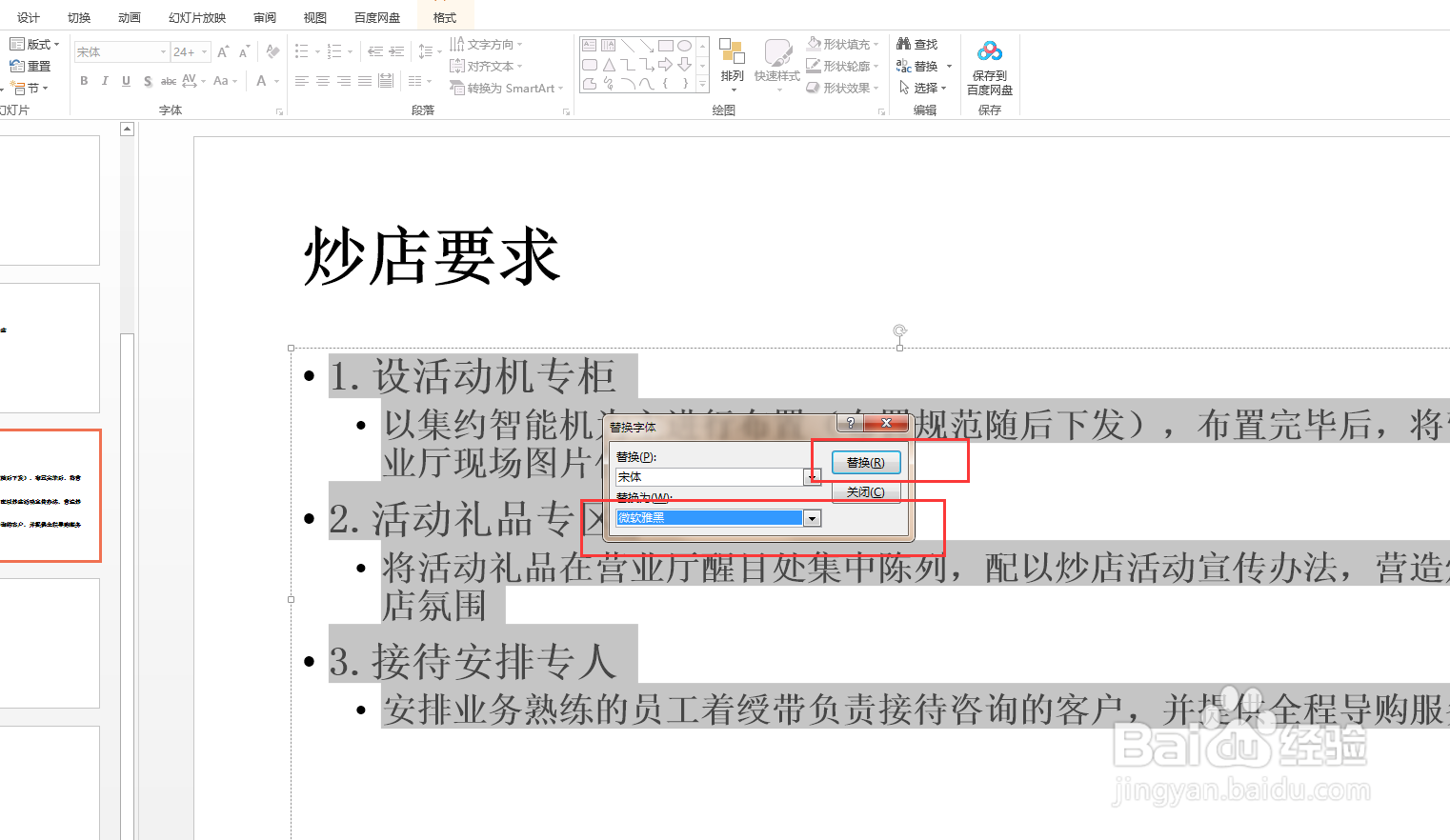 4、选择要替换的字体(一般不知道用什么字体好看,我们就用微软雅黑)