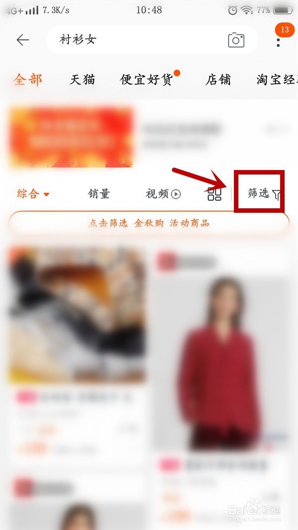3、进入到下一个页面,假设我们想购买一件女式衬衫,我们输入关键字“衬衫女“,然后趴毙点击【搜索】。
