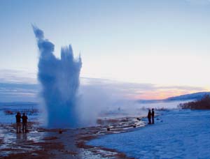 为了捕捉到这“生命”即将诞生的一瞬,我们在喷泉边等了很久,一次次喷发,一次次拍摄。 最难的,不是拍摄它的喷发,而是捕捉即将喷发一瞬间的那个魅人的蓝色水穹。导游在一边不停地为我们预测它要喷发的时刻,我们在泉水边一次次按动快门,当我终于捕捉到它的瞬间,激动的心情溢于言表。