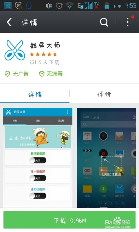 3、截屏的时候【截屏大师】没有【咔嚓截屏】好,【截屏大师】截屏就跟我们在QQ上截屏一样直接用手一滑,而且【咔嚓截屏】是滚动截屏的。