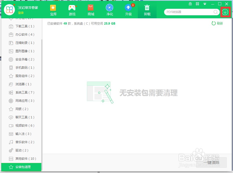 6、点击打开下载目录,打开安装包存放文件夹。这里的程序我们刚清除了,所以没有程序。