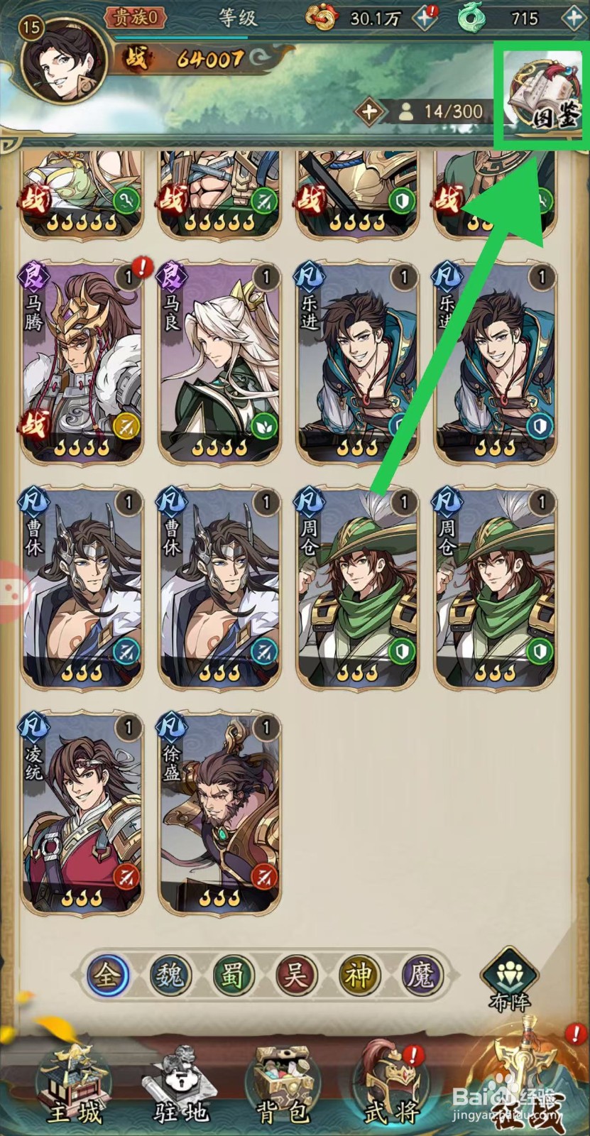 1、首先,打开群英风华录,点击页面上的【图鉴】。