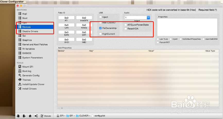 7、当然你也可以在苹果系统里面,用自带的配置工具进行修改,我们打开之后,我们找到devices,将fixownership,进行勾选上,如图所示: