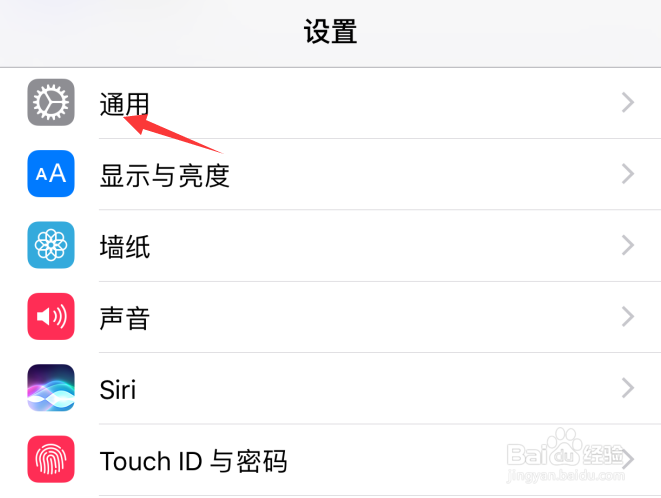 2、进入到iPhone手机通用设置页面中,点击打开访问限制