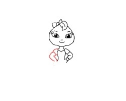 2、接着,勾画出头后方的蝴蝶结,并悦冷添加脖子添加领口的线条。