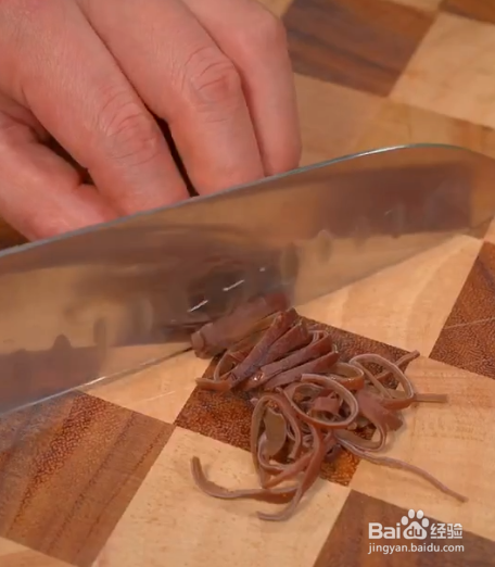 1、首先胡萝卜、木耳切成丝,然后将豆腐切成丝再切片;