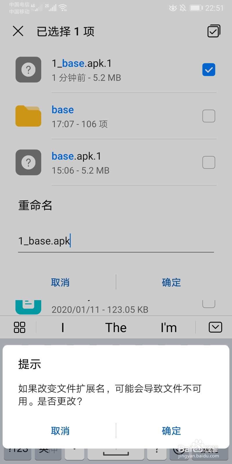 2、在打开页面搜索栏中输入app软件包的名称中的几个字母,如下图,我们输入base,则可以找到相对应的base.apk.1