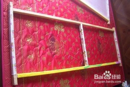 9、木料组装,钉子钉牢,卡到床垫子上,再将两边的纱网缝上。