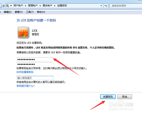 7、对于创建密码进行填写,最好填写我们经常会用到的密码,这样方便记忆。填写好之后点击创建密码即可;