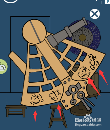 1、打开电脑上“妈妈把我锁在家里了”游戏,找到游戏中六分仪的图案。