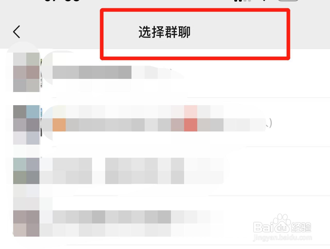 4、在选择群里界面中,可以查询到隐藏的群