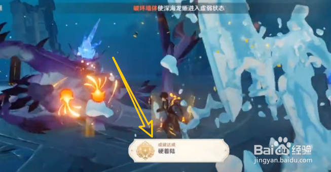 3、之后等龙蜥跳到墙上,击碎墙壁即可获得【硬着陆】成就。