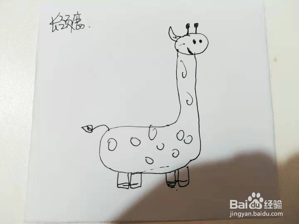 2、第二步,我们来画卡通长颈鹿的身体轮廓,如下图