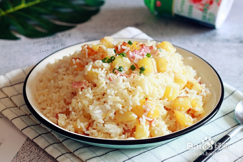 5、最后,把米饭炒松。洒上一些葱头,让它更香!