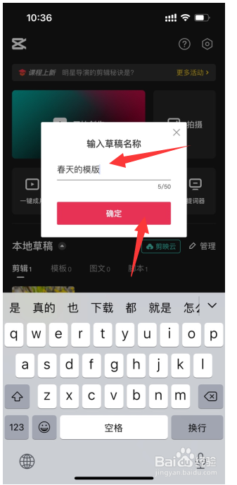 1、打开剪映,在剪映中找到草稿箱,点击想要重命名的作品右下角的三个竖点