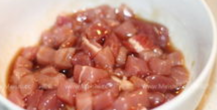 6、 把葱、姜、蒜、辣椒肉丁放入锅内,用油烧热