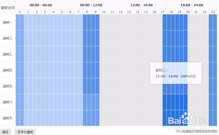 3、分时段折扣比例,在前面的文章中我们有谈到不同的行业有不同的时段折扣比例,比如黄金时间段早9到11点,下午1到4点,晚上8到10点这个时间段一般都会出价到110%的比例,此时的出价就会在原来的基础上增加了10%。比如出价是1元,那么这个时间段的点击就很有可能是1.1元了。