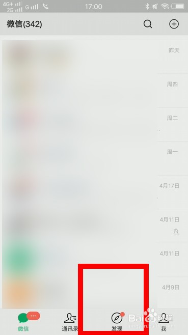 2、进入微信,点击发现。