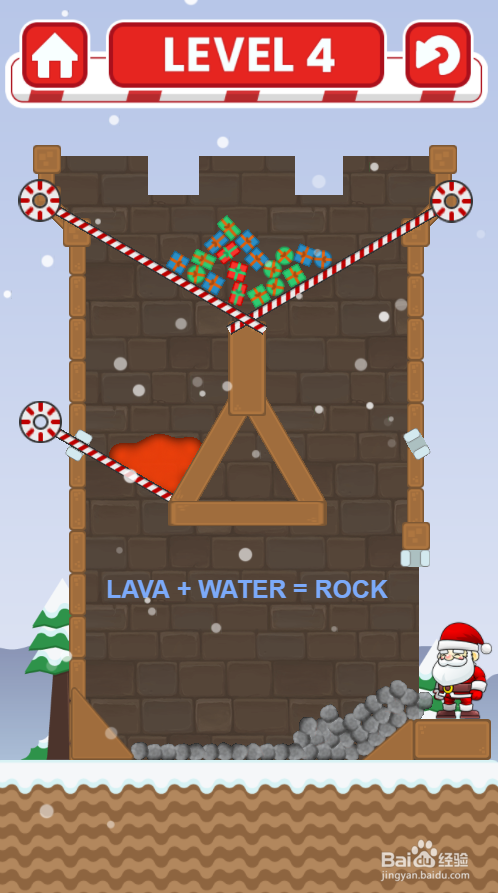 5、圣诞老人成功拿到圣诞礼物,弹出LEVEL COMPLETED的通关画面,如图,这样就过关了。