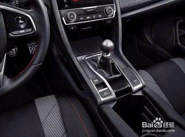 3、在内饰设计方面,黑色的内饰采用了较为比较简约的设计风格,在细节位置采用了红色缝线装饰,定位运动车型的思域并未采用了三幅式平底方向盘,而是采用了较为普通的设计,中控台面板采用了炭纤维的装饰,操控区那个全校精悍的档杆,包裹性极强的运动座椅等都透露着十足的运动气息。