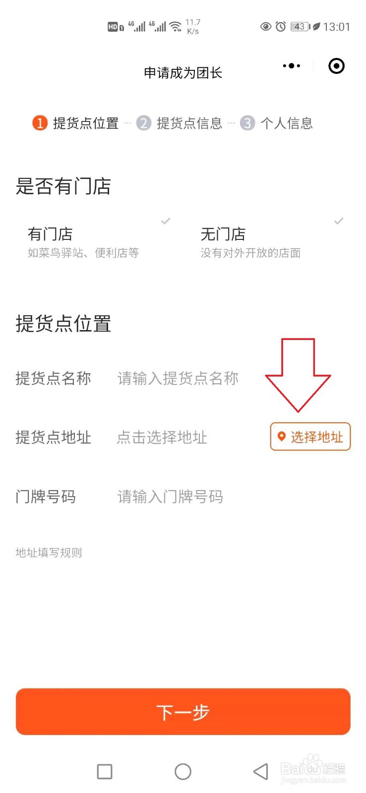 5、然后选择【门店类型】,选择好对应的【位置】。