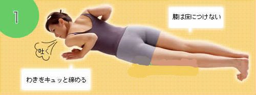 1、 1:俯卧,保持身体笔直成一条直线,吐气,然后双手及脚尖撑地,做俯卧撑姿势,注意膝盖不能贴地。