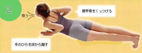 2、 2: 深吸一口气,双手离地,头部及背部尽量向后拉伸至最大限度。