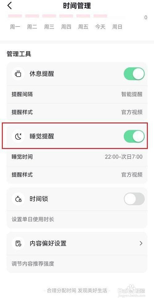 在时间管理页面,把【睡觉提醒】选项关闭即可!