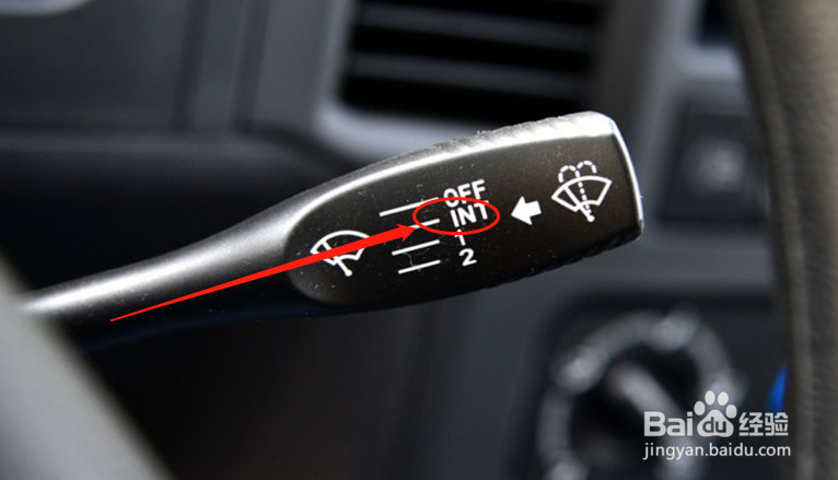 3、把雨刮控制杆推到“INT”挡位为间歇式雨刮动作档位。