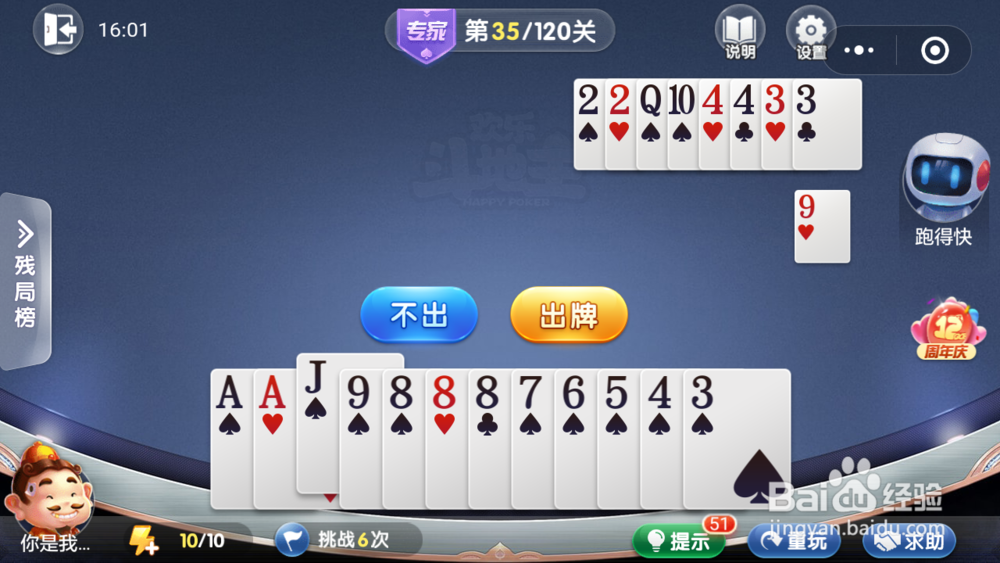 微信小游戏欢乐斗地主残局专家关卡第35关攻略