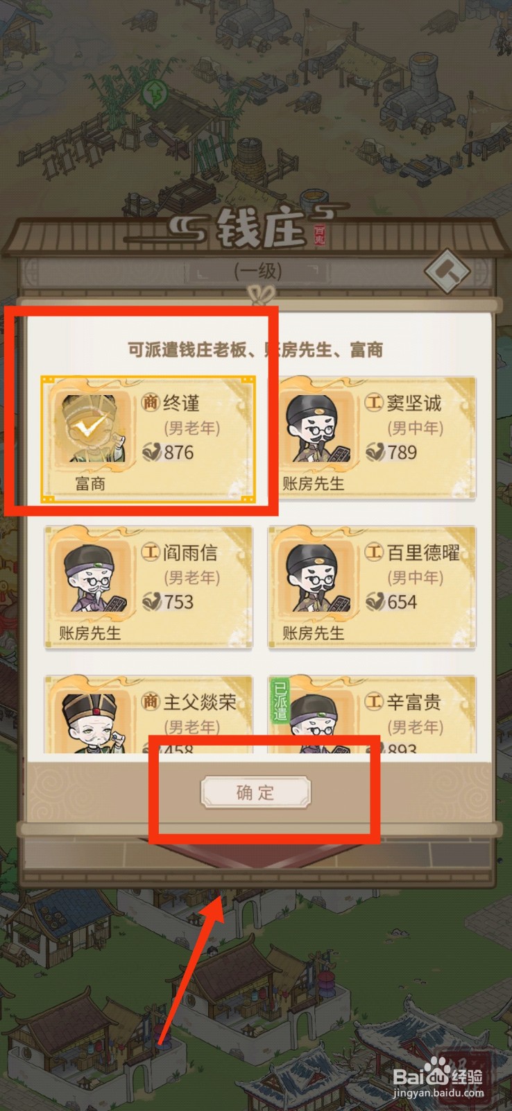 3、进入界面后,选择富商,点击【确定】图标即可。